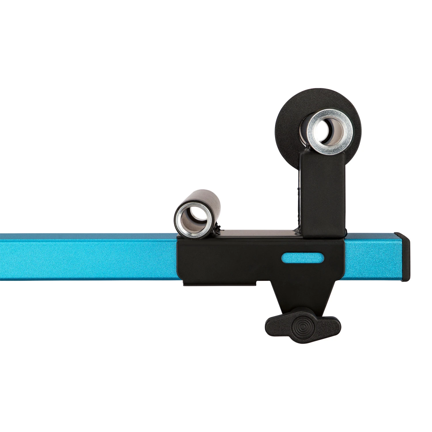 The BLUECHAIN Race PRO Work Stand is the perfect partner for all your maintenance, repair and cleaning work on bikes or frames. Unlike conventional work stands, which clamp the top tube or seat post, the BLUECHAIN Race PRO’ arm holds the frame securely by the bottom bracket. It is secured with hook and loop fasteners. The fork or frame drop-out is also clamped with an adjustable slide. As standard, it is designed for thru-axles (12×100 or 12×142 mm). An adaptor for quick-release skewers is available as an optional accessory.