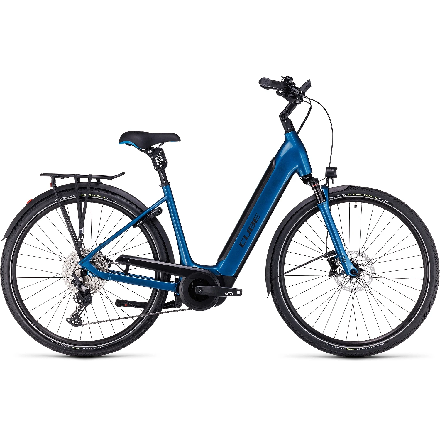 With the Supreme Sport Hybrid EXC, CUBE paired Bosch’s powerful Performance motor with Shimano’s easy-to-use, wide-ranging Deore 1×12 gears – so, however hilly your route, there will be a gear to get you to your destination in comfort. Speaking of which, the air-sprung suspension fork, Schwalbe Marathon E-Plus tyres, suspension seatpost and adjustable stem will have you smiling through the miles.