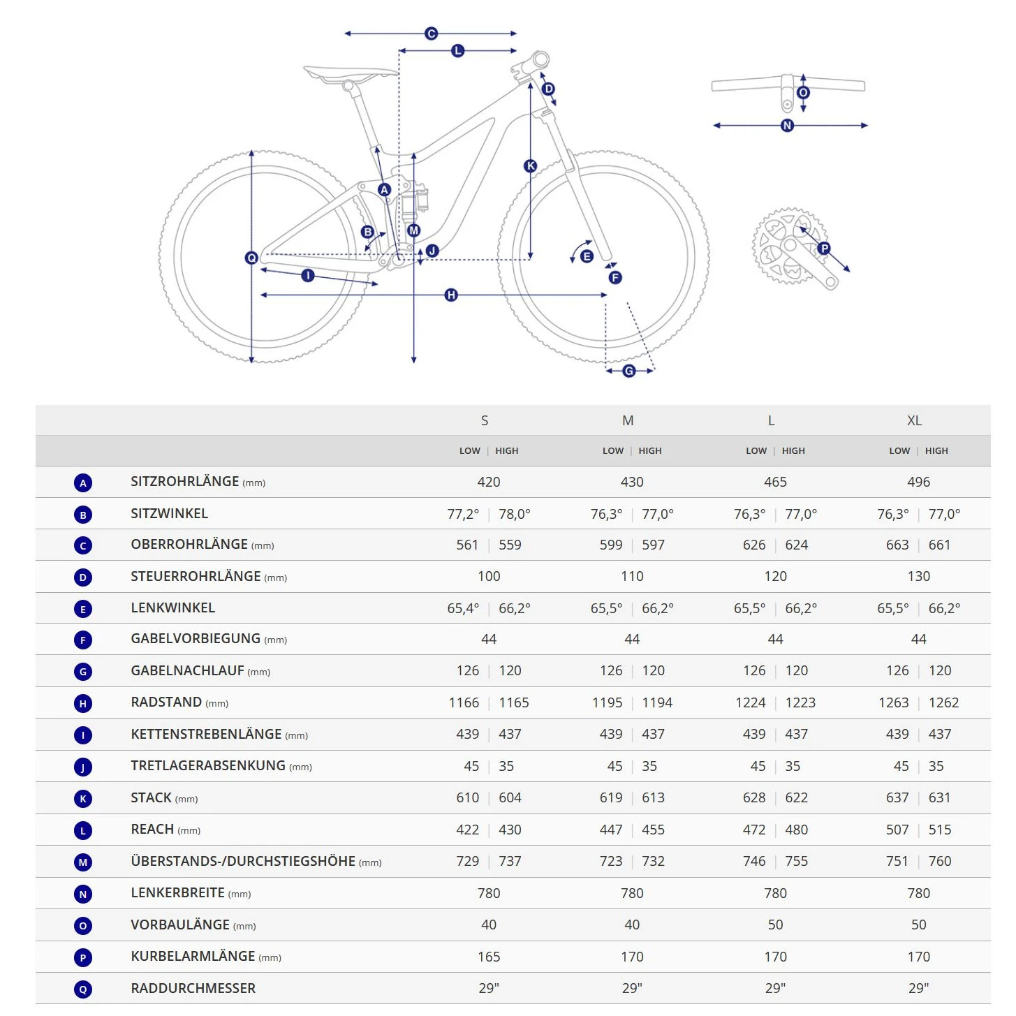 - Use the adjustable frame geometry via flip-chip function to adjust the handling to different trail conditions.