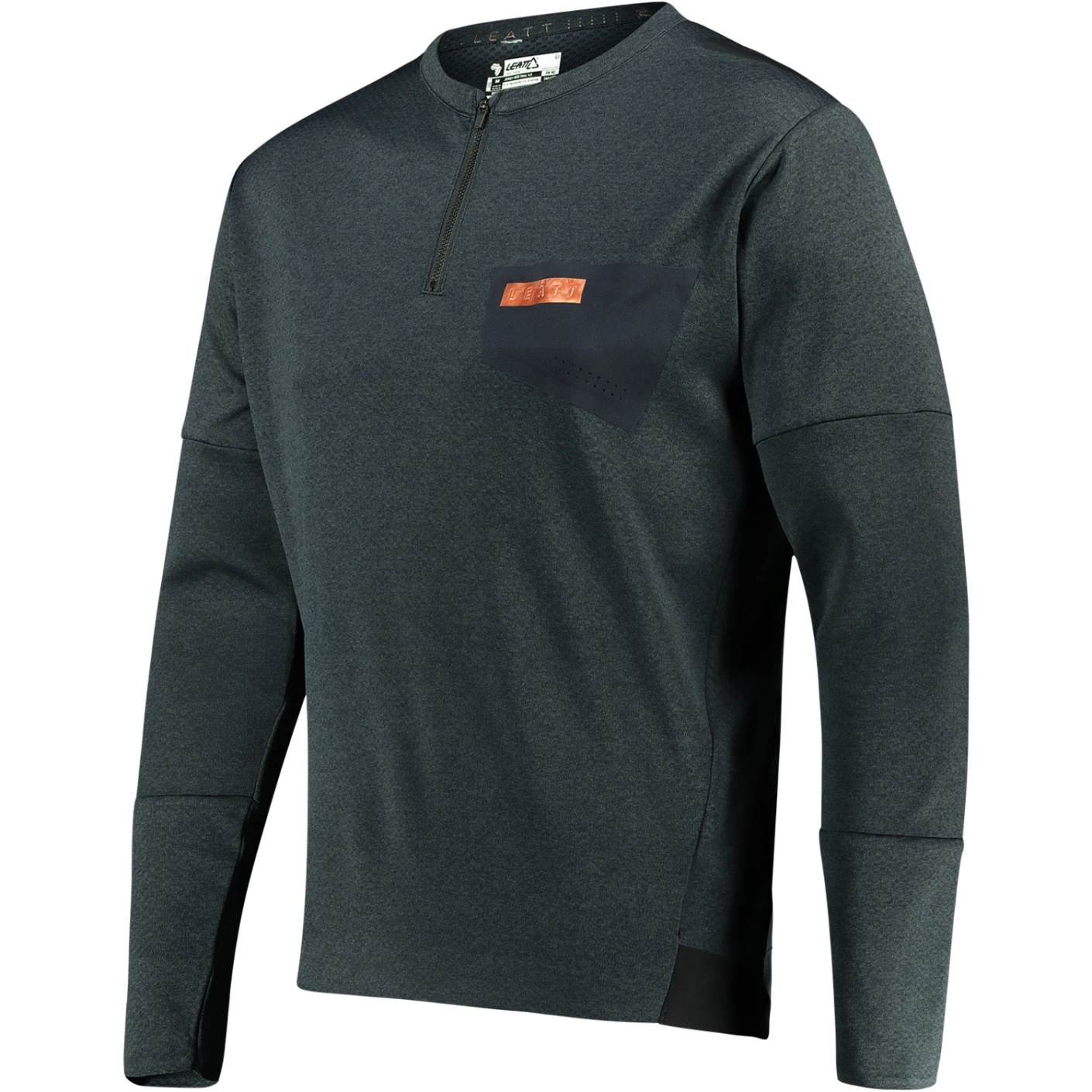 Long sleeve MTB jersey with cargo pockets and short front zipper.