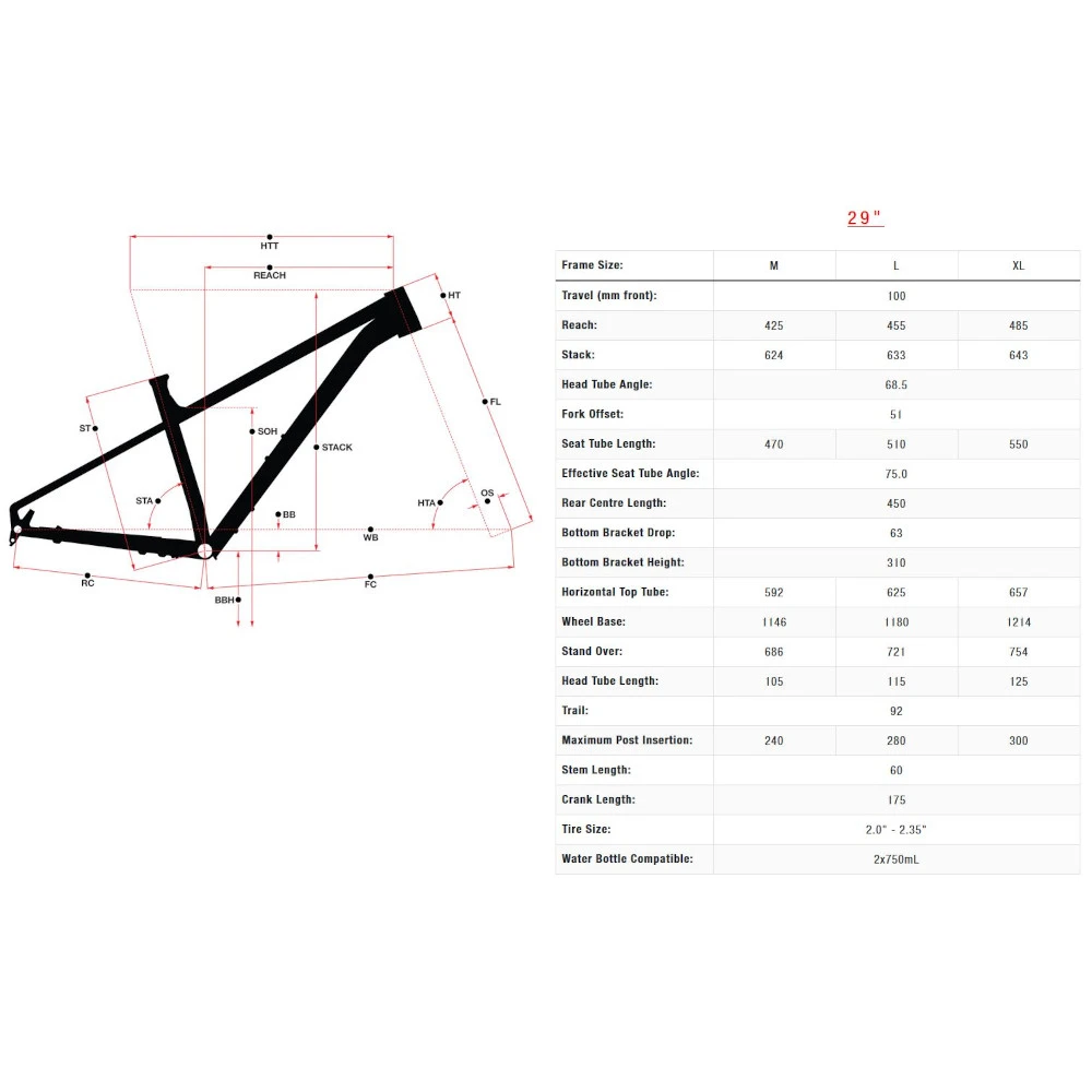 - Suntour XCM fork with 100mm travel