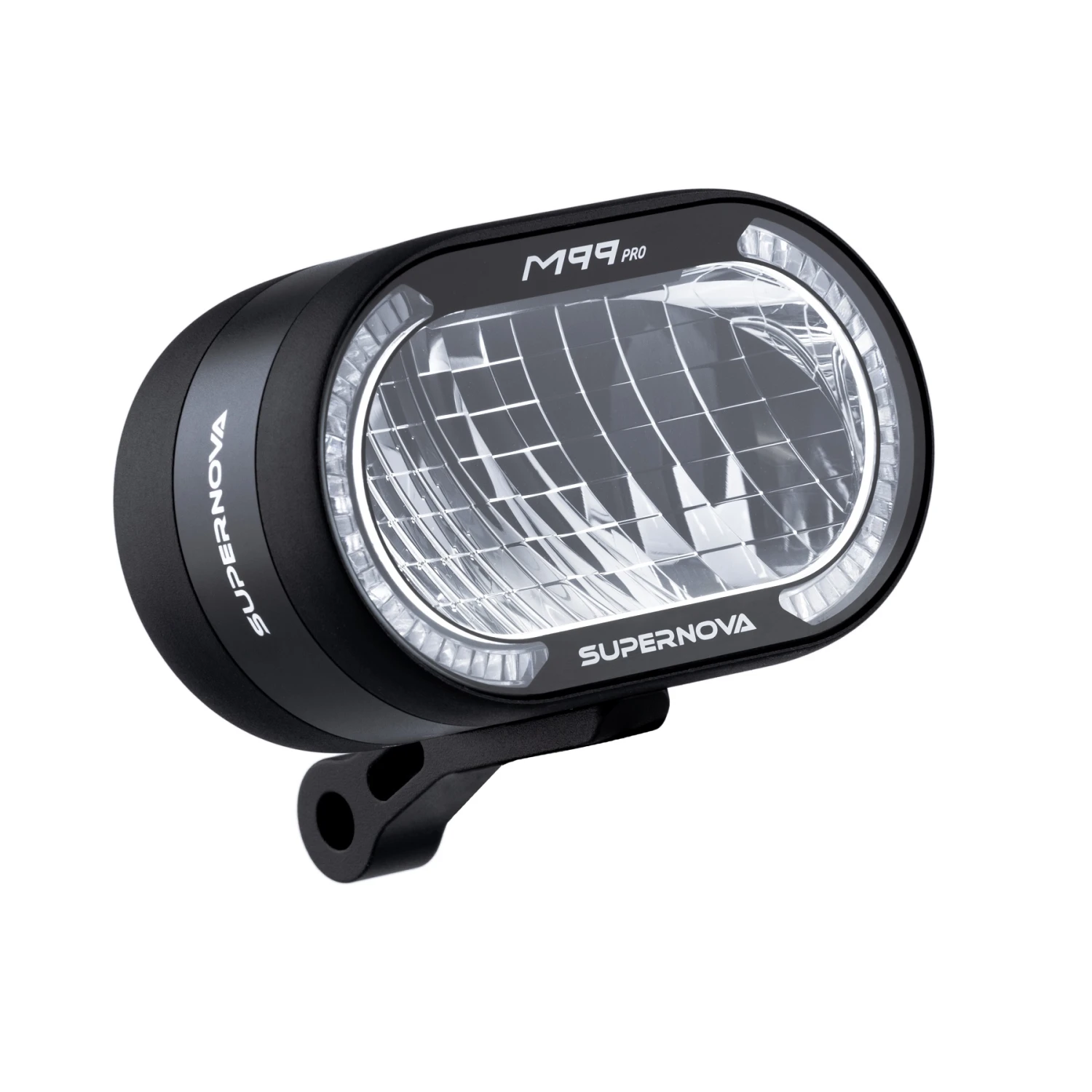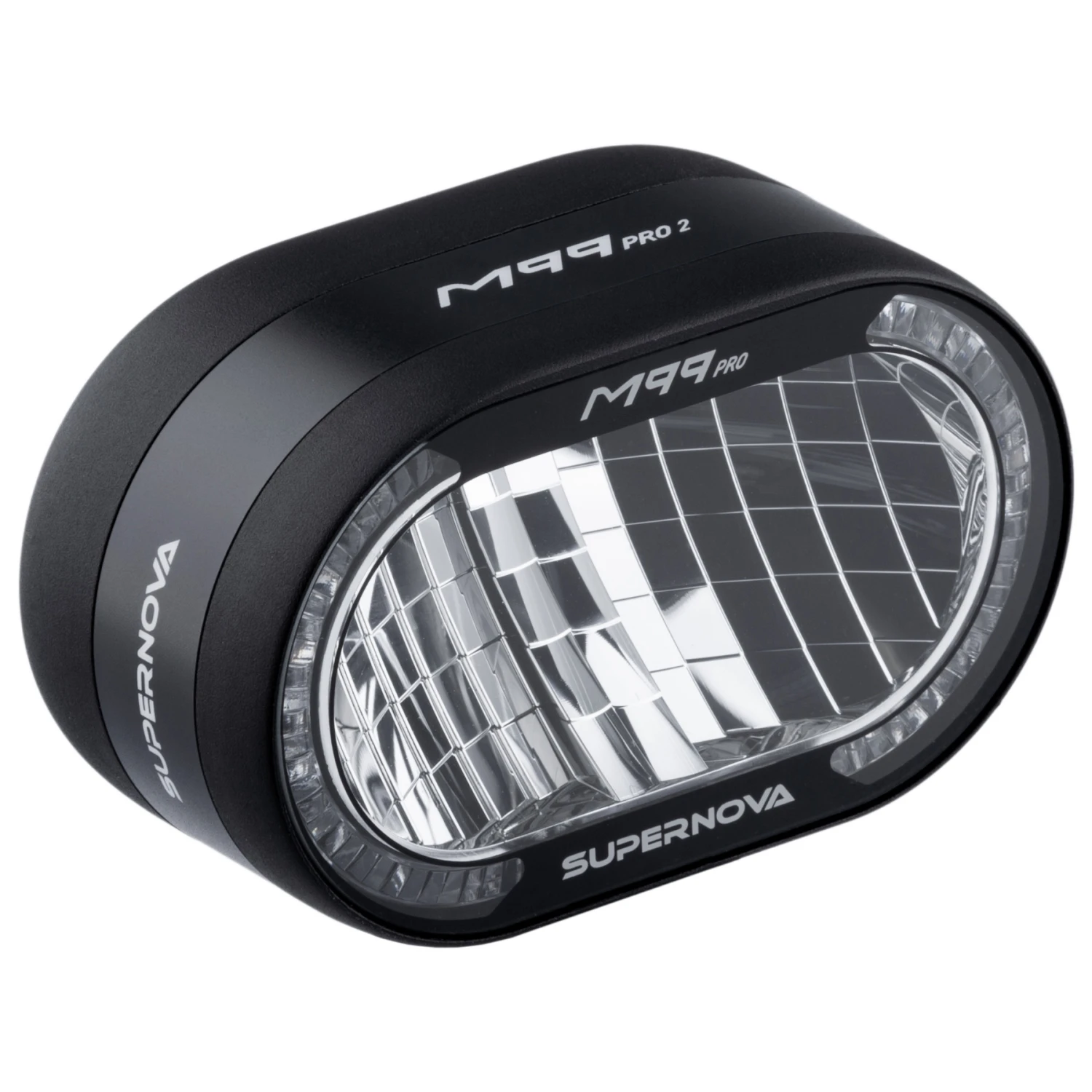 With this you are the king of the road: The M99 PRO 2 is the brightest E-bike front light legally approved in Germany. With a high beam of up to 3,000 lumens and 450 lux, the 16-LED matrix sets new standards. The front light has an intelligent control center that manages components with short-term high power consumption such as a horn or a USB. A light sensor automatically switches between the new SMD LED daytime running light module and the low beam in fractions of a second. The completely redesigned aluminum housing and tempered front glass protect the optics and electronics from all environmental impacts with protection level IP67. All materials are subjected to stringent quality controls during production of the front light in Gundelfingen, Germany. The front light is available in two versions – for fast E-bikes with an E-number and for 25 km/h bikes with a K-number approval.