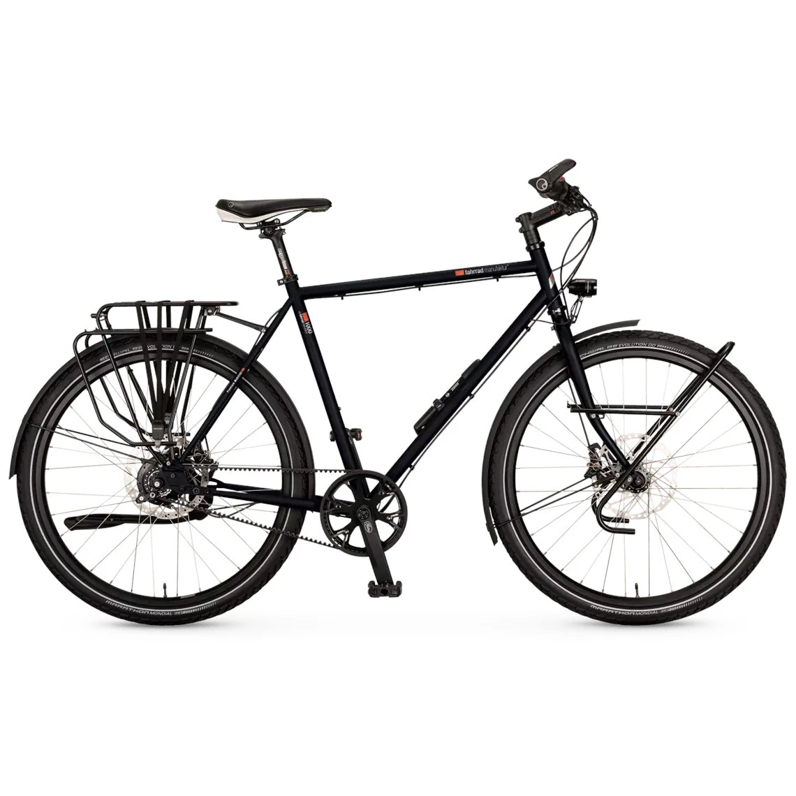The wanderlust can begin – with luggage rack, bag holders, bottle holders, Supernova E3 lighting system, Schwalbe Marathon Mondial tires and much more – a timeless, durable touring bike awaits you. With the reliable Rohloff Speedhub rear derailleur and including the 203mm brake discs, the TX-1000 is perfectly equipped for a long adventure. The expedition bike is also equipped with a low-maintenance Gates CDX anti friction belt.